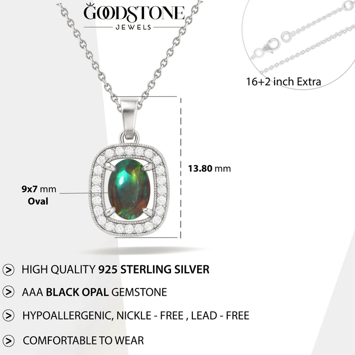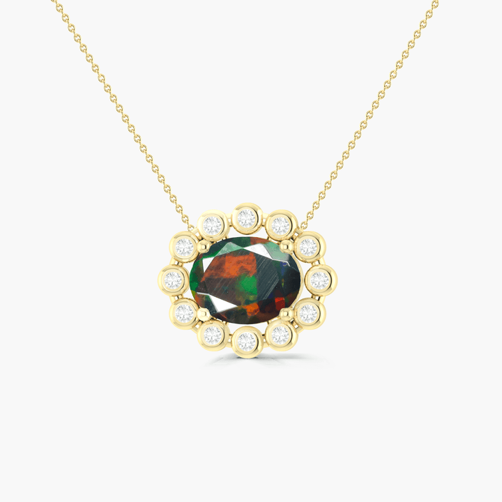 Bezel-Set Zircon Oval Black Opal Solitaire Pendant