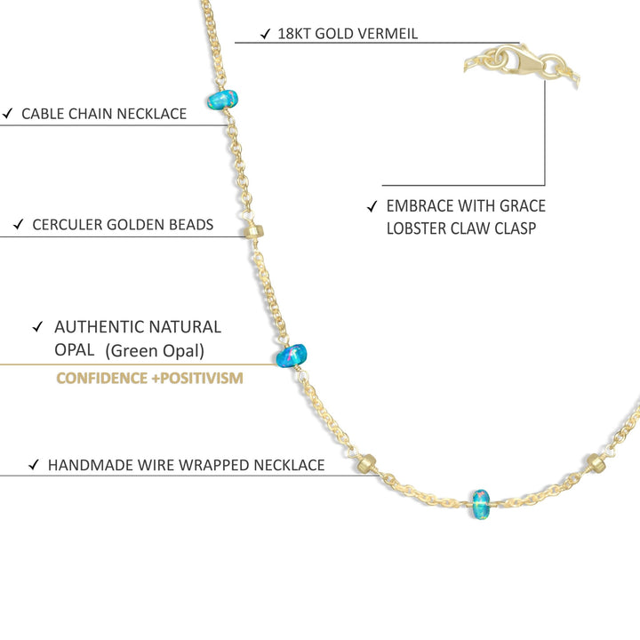 Natural Opal Beads Cable 16 + 2 Inch Chain Necklace With Lobster Claw Clasp