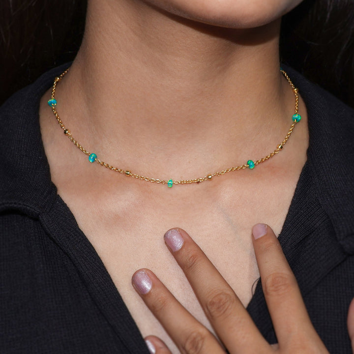 Natural Paraiba Opal Bar Chain Necklace for Women