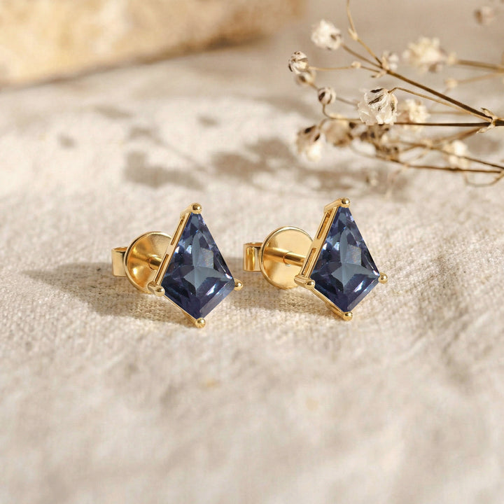 Alexandrite Kite Stud Earrings in Yellow Gold Plated 7x5 MM 1.50ct