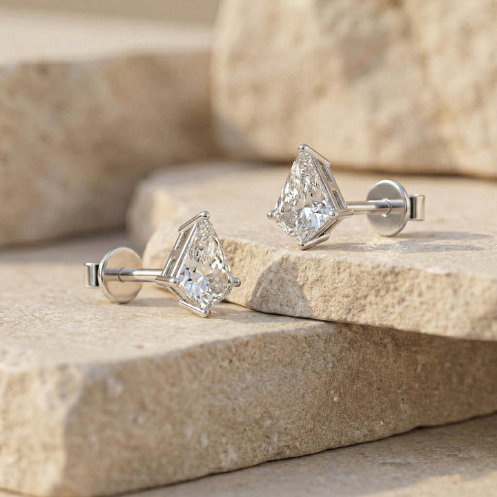 Simulated Diamond Kite Stud Earrings in 925 Sterling Silver 7x5 MM 1.50ct
