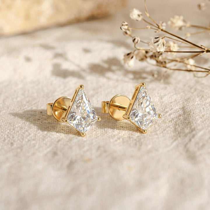 Simulated Diamond Kite Stud Earrings in Yellow Gold Plated 6x4 MM 1ct