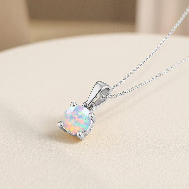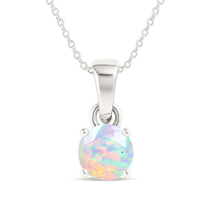White Opal Round Solitaire Pendant Necklace in 925 Sterling Silver 7 MM 1.5ct