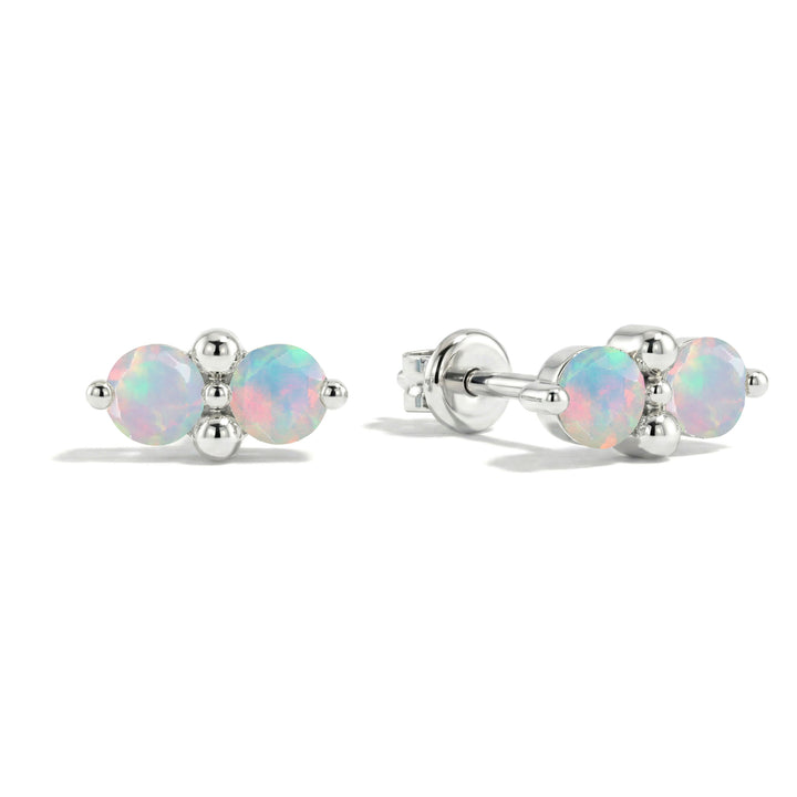 White Opal Round Stud Earrings in 925 Sterling Silver 3 MM 1.20ct