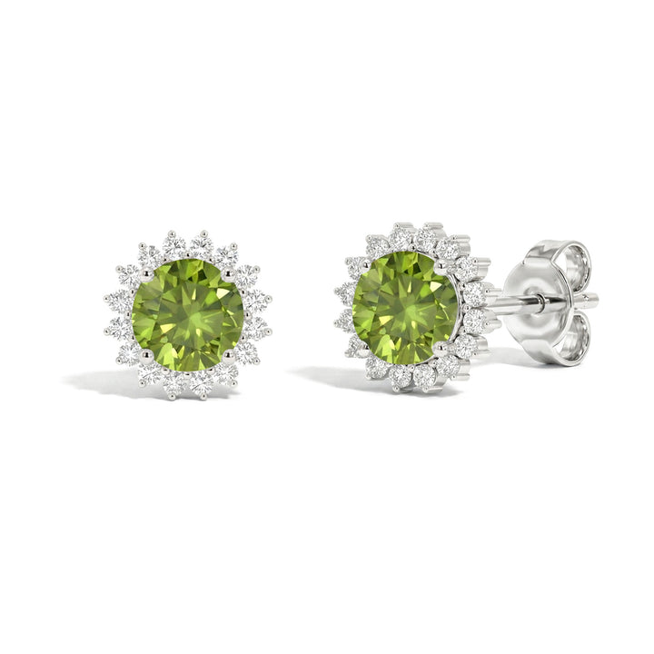 Peridot Round Halo Stud Earrings in 925 Sterling Silver 5MM 1.30ct