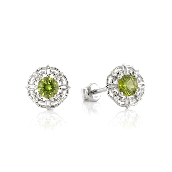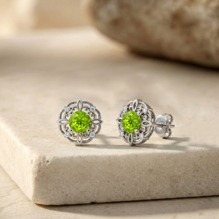 Peridot Round Halo Stud Earrings in 925 Sterling Silver 5 MM 1.3ct