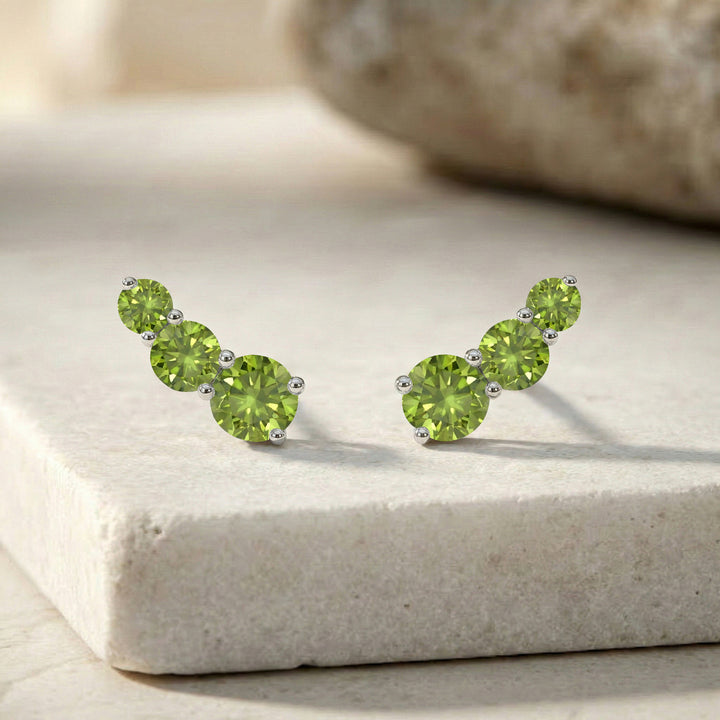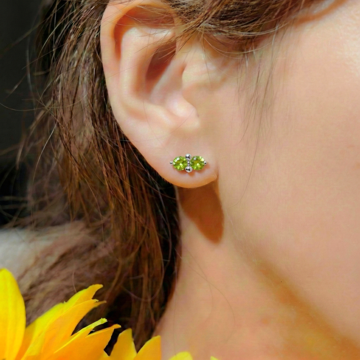 Peridot Round and Oval Stud Earring in 925 Sterling Silver 6 MM 5-ct.