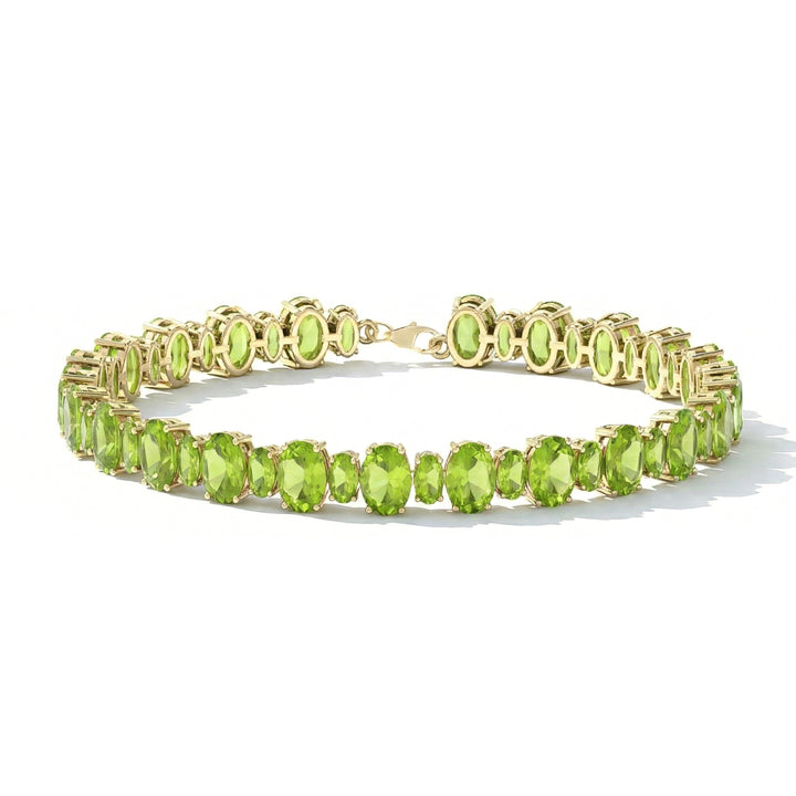 Peridot Oval Tennis Bracelet in 925 Sterling Silver 7x5 MM 34.50ct