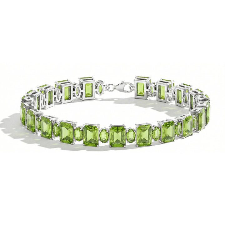 Peridot Octagon Tennis Bracelet in 925 Sterling Silver 7x5 MM 34.50ct