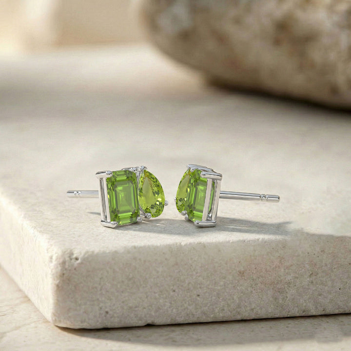 Peridot Pear and Octagon Stud Earrings in 925 Sterling Silver 6*4MM 2ct
