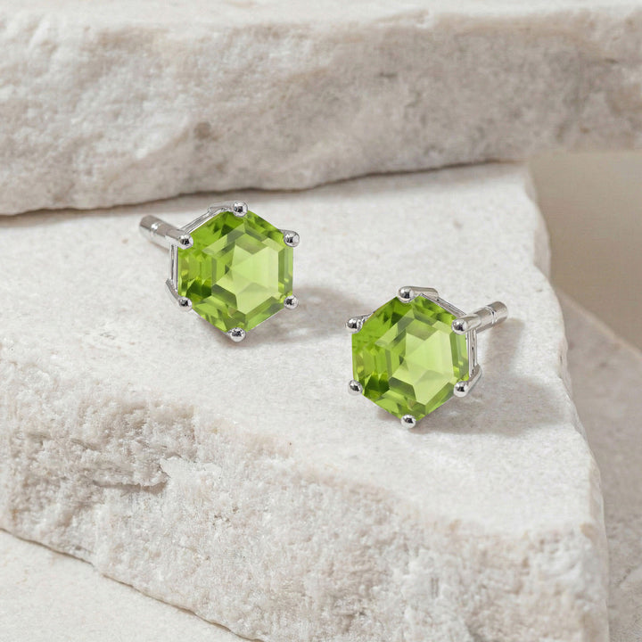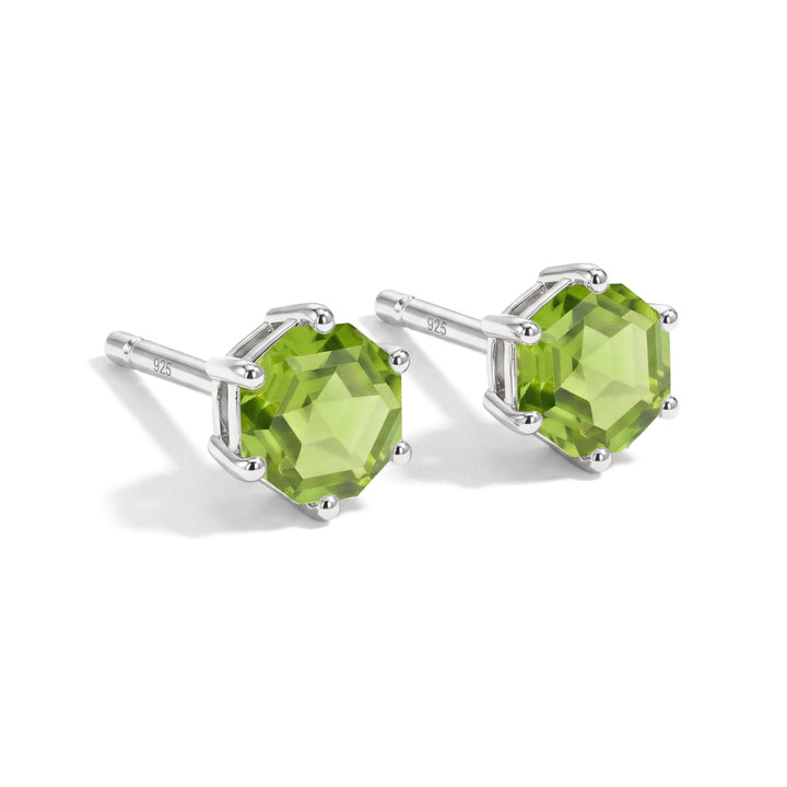Peridot Hexagon Stud Earring in 925 Sterling Silver 6 MM 2ct