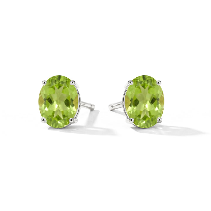 Peridot Oval Solitaire Stud Earrings in 925 Sterling Silver 5.35ct