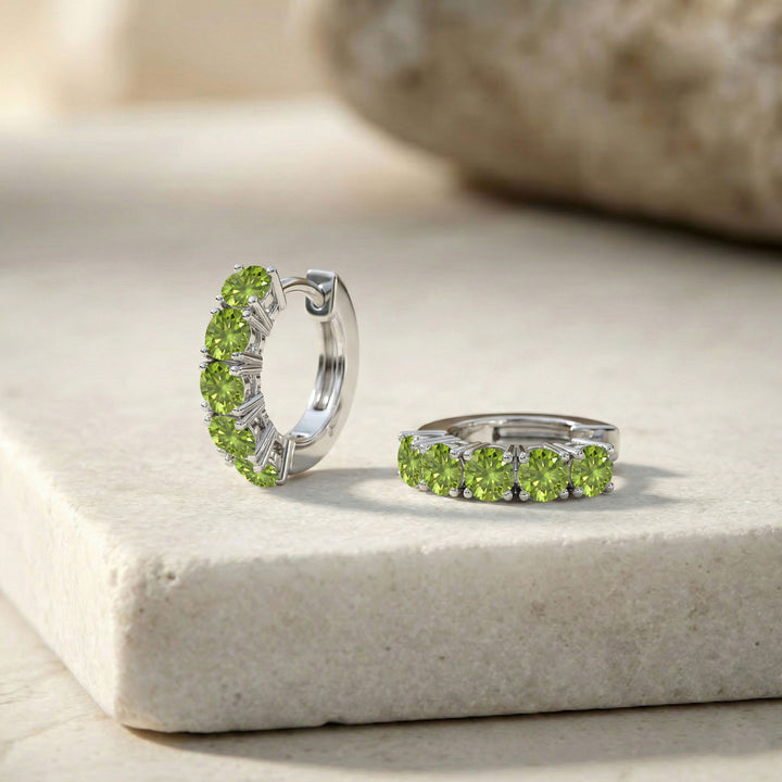Peridot Round Hoop Earrings in 925 Sterling Silver 3MM 3ct