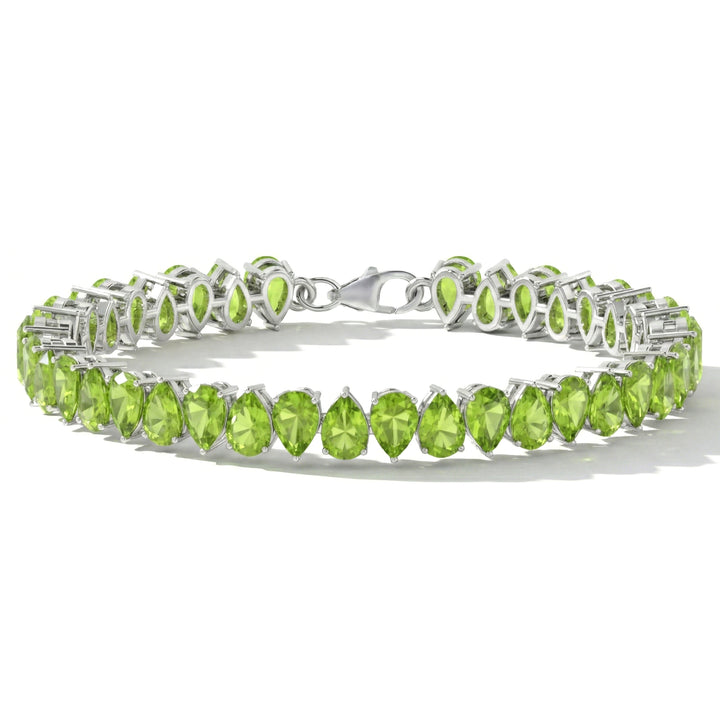 Peridot Pear Tennis Bracelet in 925 Sterling Silver 22 CT