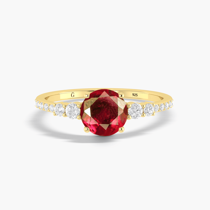 Genuine Red Rose Ruby with a small round Cubic Zircon ring