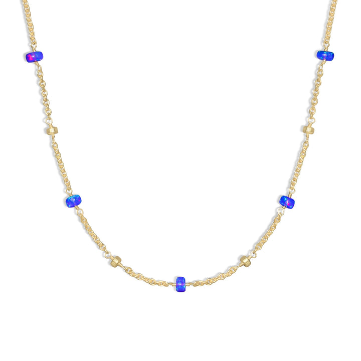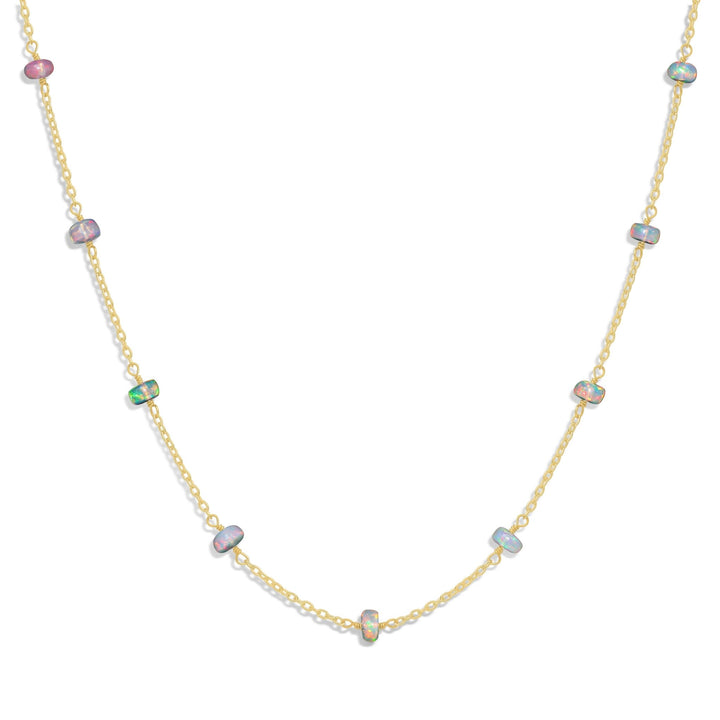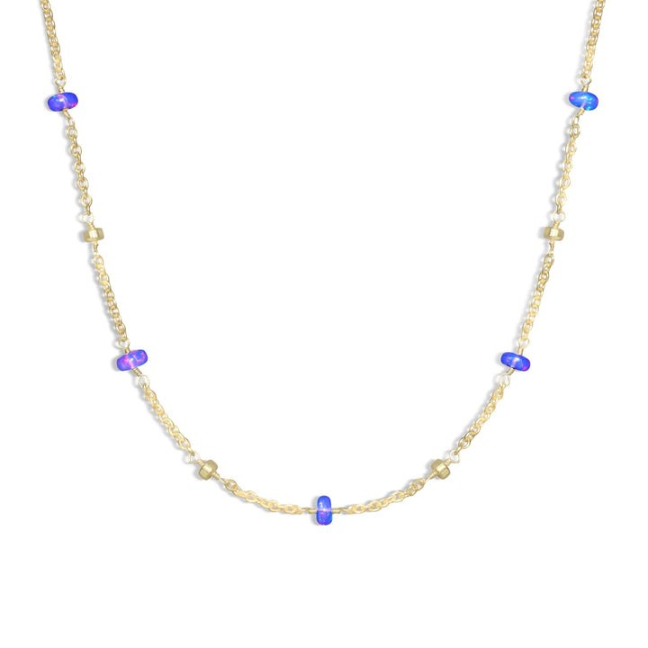White opal beaded with 18k Gold Vermail wire chain necklace