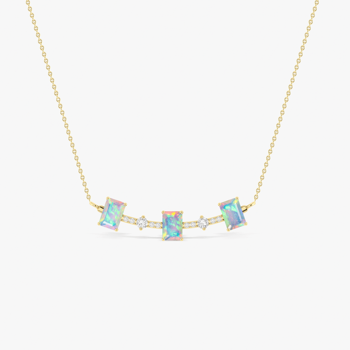 White Opal Baguette Gemstone Bar Pendant