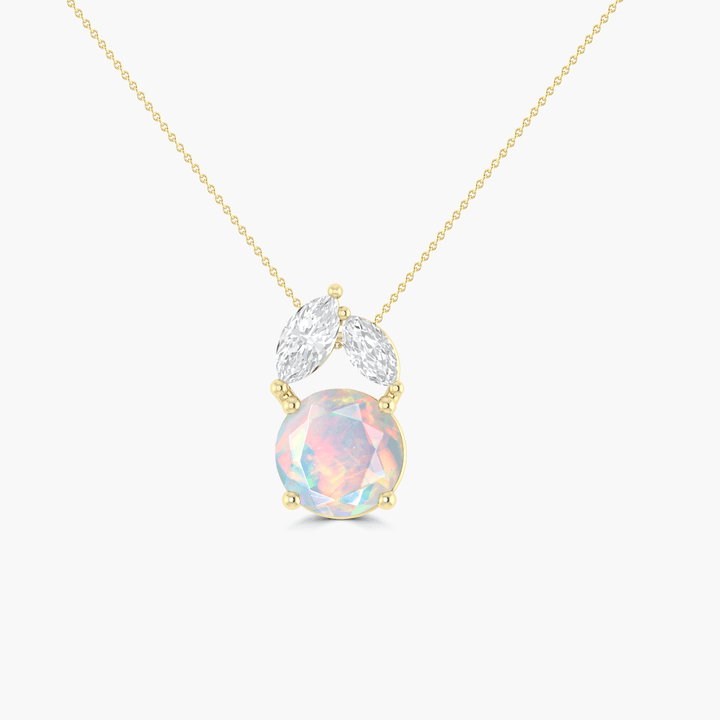 Natural White Opal Round Cluster Charm Pendant Necklace