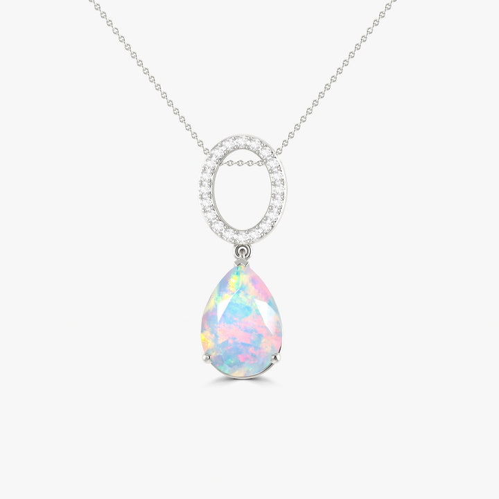 Single Pear Stone Drop Chain Pendant Necklace Natural White Opal