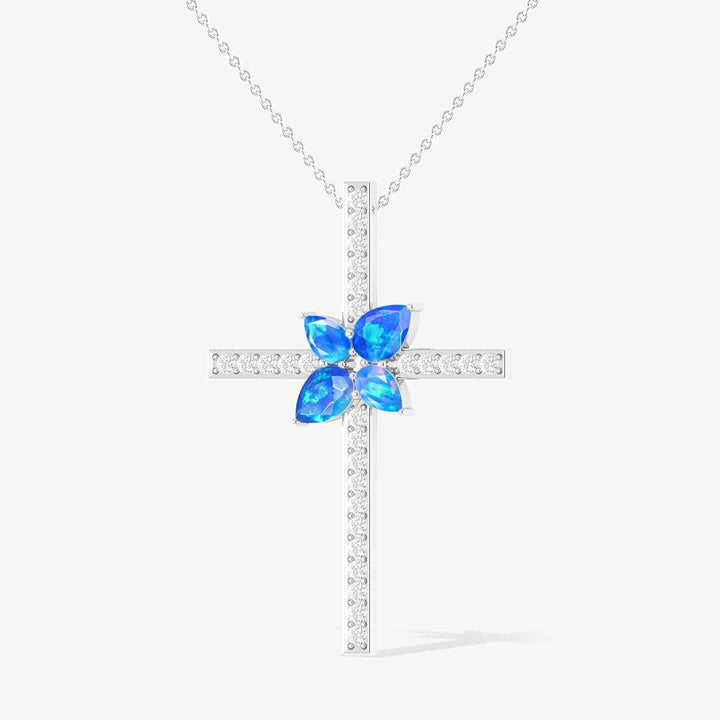 Cross Style Chain Pendant Necklace Natural Blue Opal