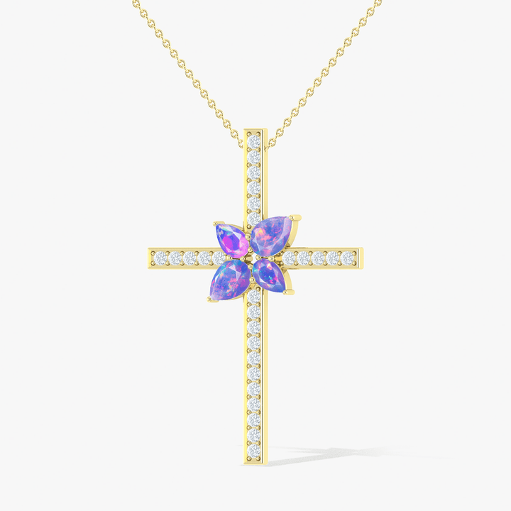 Cross Style Chain Pendant Necklace Natural Lavender Opal
