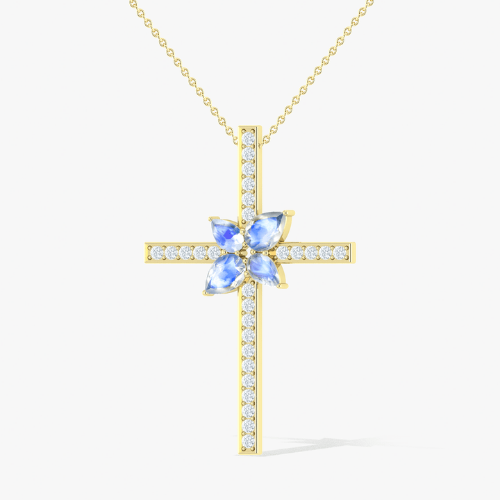 Cross Style Chain Pendant Necklace Natural Moonstone