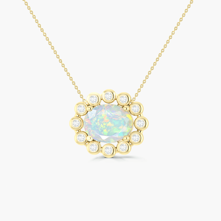 Halo Chain Pendant Necklace with Natural White Opal & Zircon