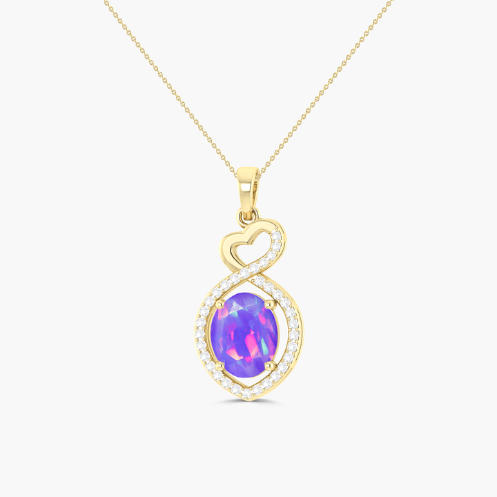 Halo Chain Pendant Necklace with Natural Lavender Opal & White Zircon