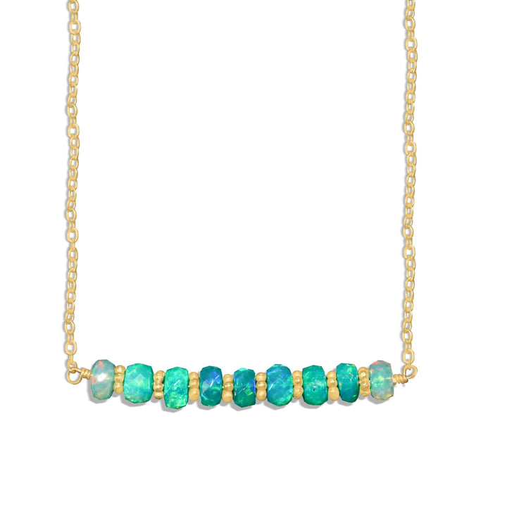 Natural Green Opal Beaded Bar Chain Necklace for Women