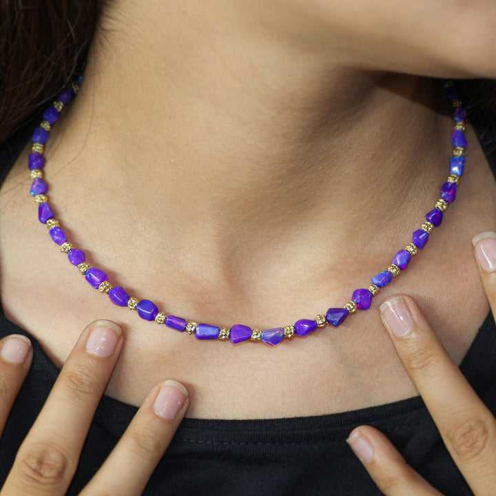 Natural Lavender Opal Charm Beaded Necklace for Women