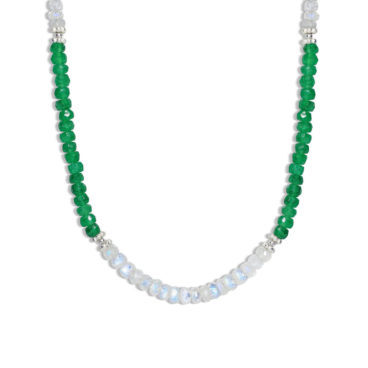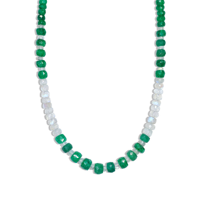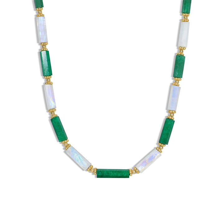 Beaded Pencil Necklace Natural Moonstone and Emerald