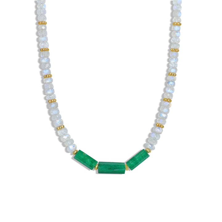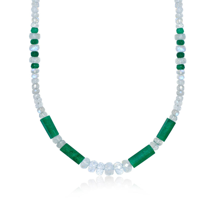 3 Pencil Beaded Necklace Natural Moonstone and Emerald