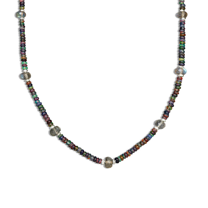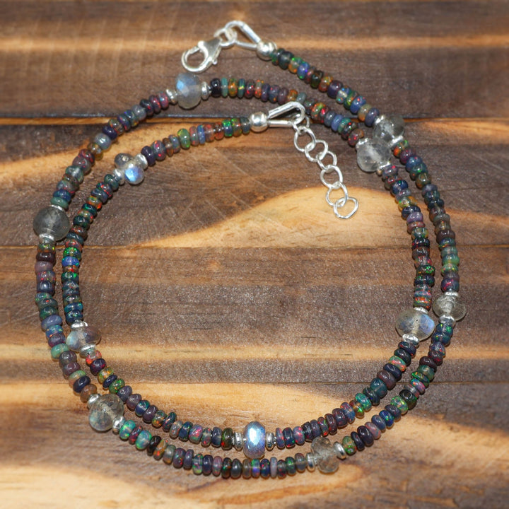 Natural Moonstone & Black Opal Dual Beaded Handmade Necklace