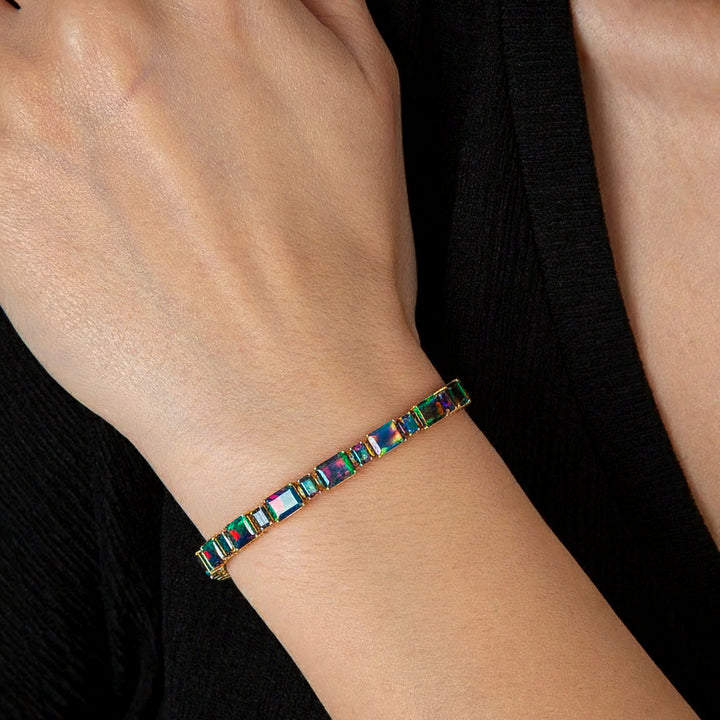 Black Opal Octagon Tennis Bracelet in 925 Sterling Silver 7X5 MM 24.15ct