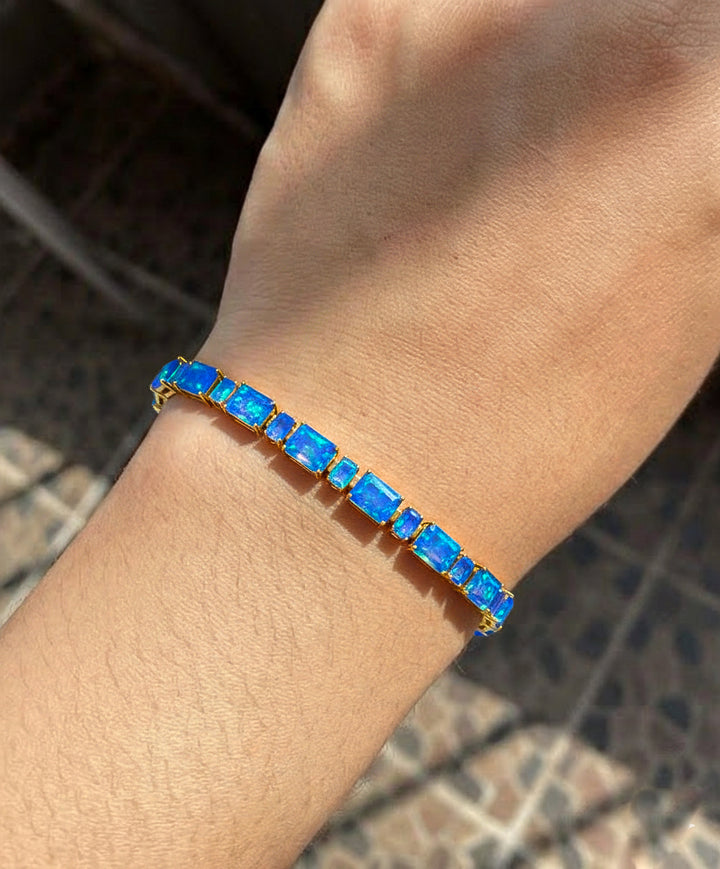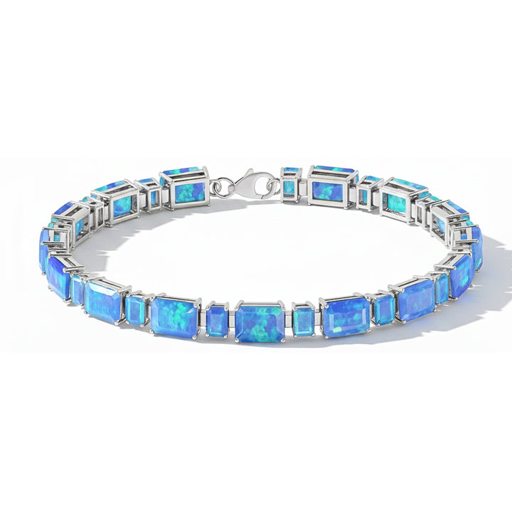 Blue Opal Octagon Tennis Bracelet in 925 Sterling Silver 5 MM 23.40 ct