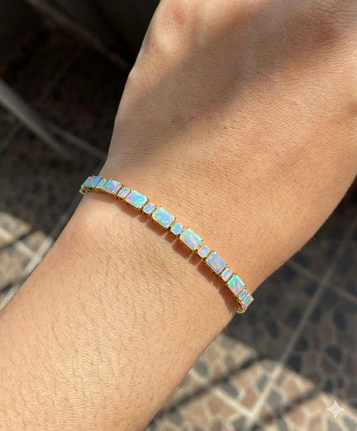 White Opal Octagon Tennis Bracelet in 925 Sterling Silver 5 MM 23.40 ct