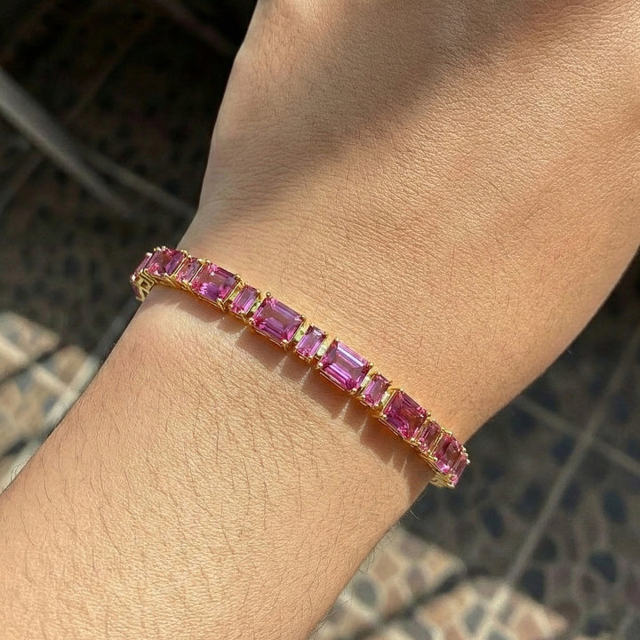 Pink Tourmaline Octagon Tennis Bracelet in 925 Sterling Silver 5 MM 23.40 ct