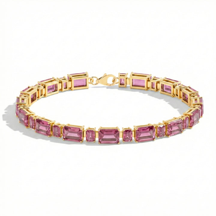 Pink Tourmaline Octagon Tennis Bracelet in 925 Sterling Silver 7X5 MM 24.15ct
