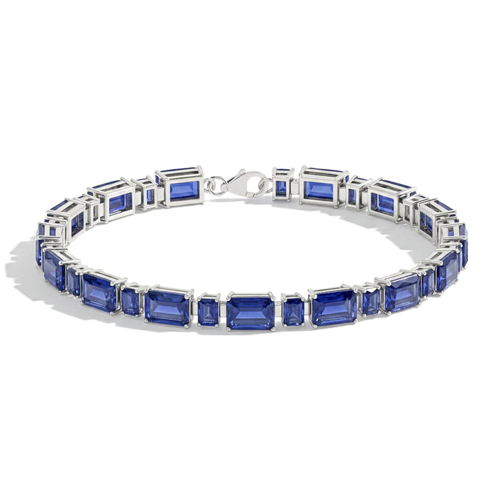 Blue Sapphire Octagon Tennis Bracelet in 925 Sterling Silver 5 MM 23.40 ct