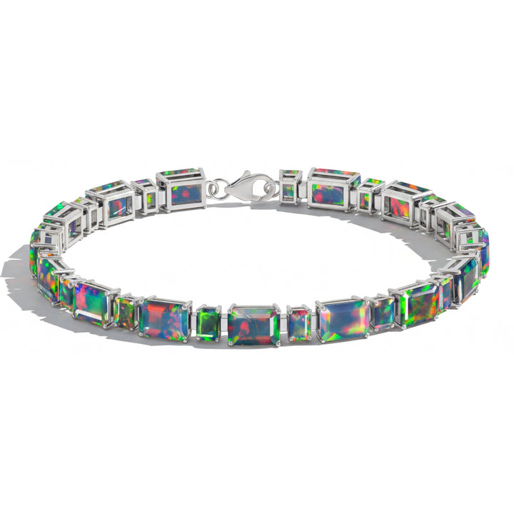 Black Opal Octagon Tennis Bracelet in 925 Sterling Silver 5 MM 23.40 ct