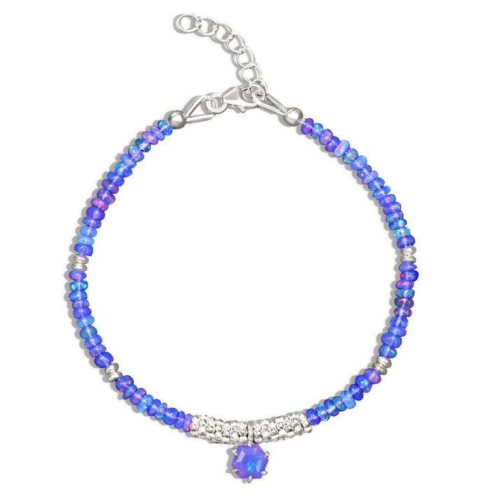 Vintage Blue fire Ethiopian opal beads with kite cut charm bracelet