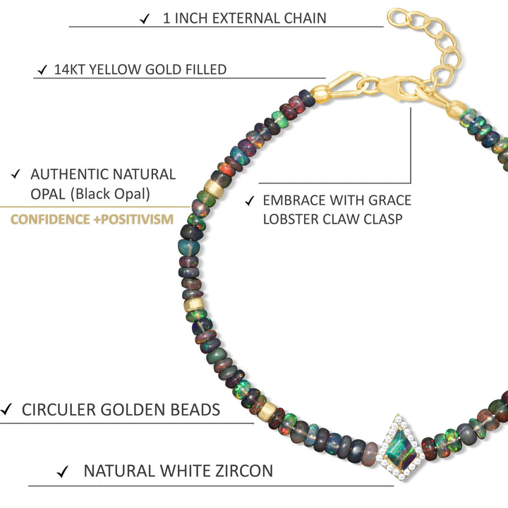 Green fire Ethiopian opal beaded with kite charm bracelet