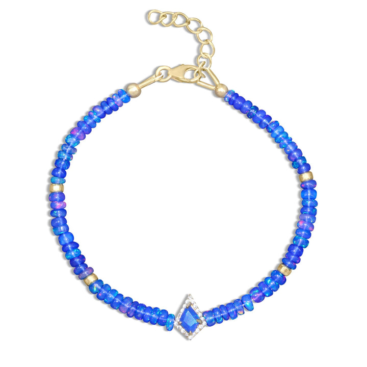 Natural Blue Opal Gemstone Kite Charm Plain Beaded Bracelet