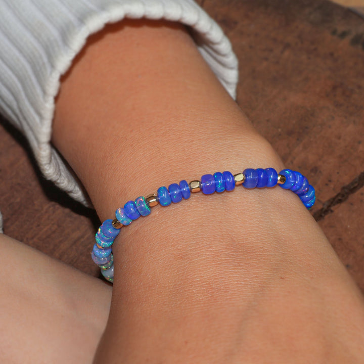 Natural Blue Opal Shaded Dainty Beaded Bracelet Gold Filled Handmade Bracelets