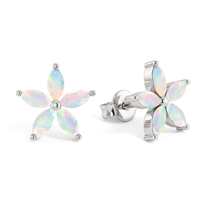 White Opal Flower and Marquis Shape Stud Earring in 925 Sterling Silver 4X2 MM 3ct.