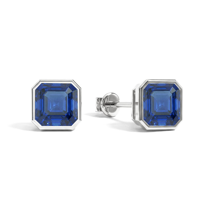 Blue Sapphire Octagon Stud Earring in 925 Sterling Silver 6MM 2ct.