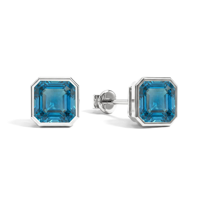 Blue Topaz Octagon Stud Earring in 925 Sterling Silver 6MM 2ct.