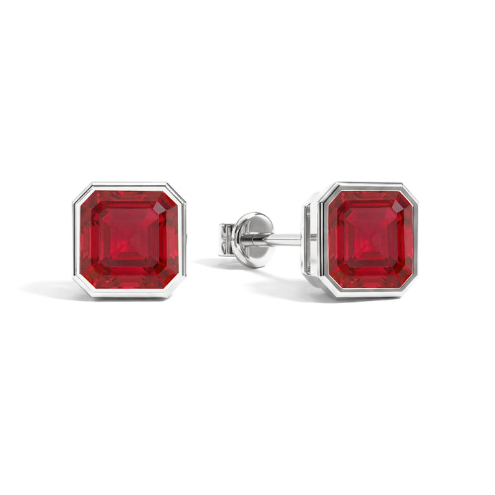 Ruby Octagon Stud Earring in 925 Sterling Silver 6MM 2ct.