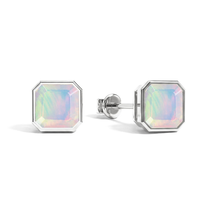 White Opal Octagon Stud Earring in 925 Sterling Silver 6MM 2ct.