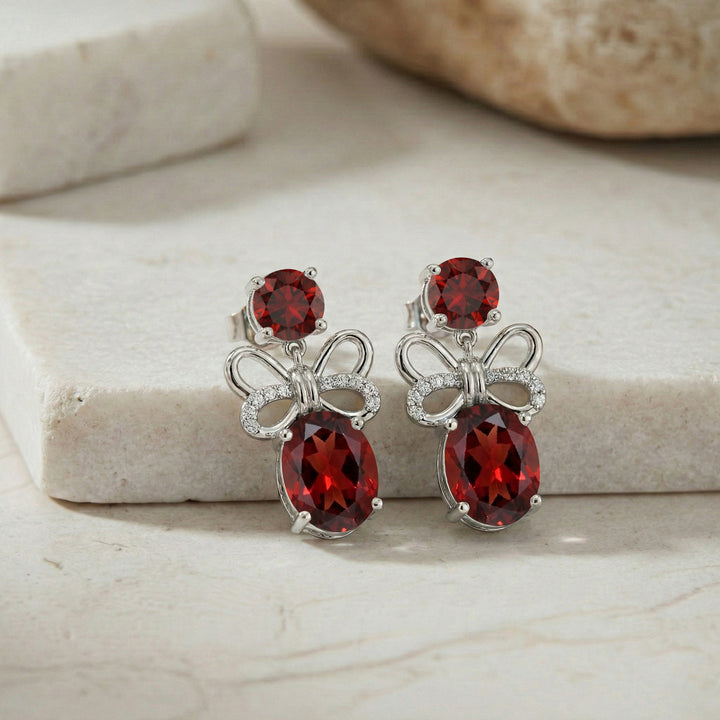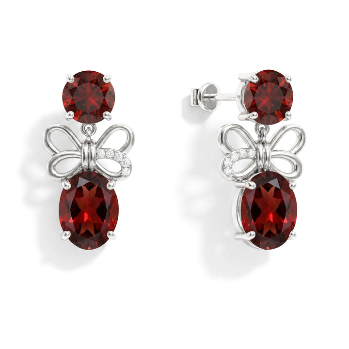 Garnet Round and Oval Stud Earring in 925 Sterling Silver 6 MM 5-ct.